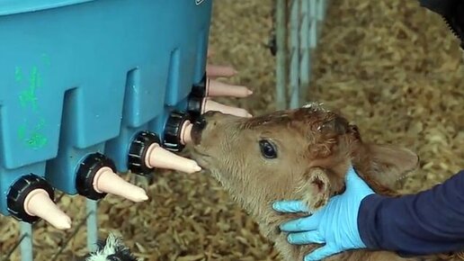 Телёнок пьёт молоко как в последний раз...