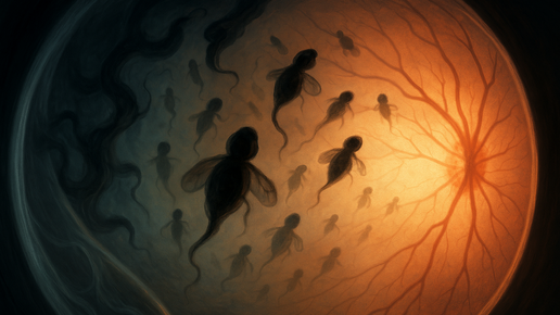 Пациенты описывают их по-разному: чёрные мушки, паутинки, ниточки, комочки пыли. Появляются внезапно, особенно на светлом фоне, и следуют за движением взгляда с небольшой инерцией. Попытки сфокусироваться на них заканчиваются ничем — они уплывают. Эти «точки» — не галлюцинации, а вполне объяснимый симптом. Речь идёт о помутнении стекловидного тела — гелеобразной субстанции, которая заполняет глазное яблоко между хрусталиком и сетчаткой. У молодых людей стекловидное тело — прозрачный однородный гель...