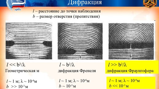 Рассмотрим внимательно рисунок выше. Размер b = 10^-3 м. = 0,001 м. = 0,1 см = 1 мм. Очевидно, в щели или отверстии, примерно равным ≈ 1 мм., происходит загадочный процесс отклонения световых лучей от прямолинейного движения. Профан - профессора объясняют это явление волновыми свойствами света и электромагнитными свойствами фотонов. Профанированный народ всё схавает! Глупости всё это! Так распространятся волновой фронт в жидкостях. Но световой поток не жидкость! Световой поток видимого света состоит из длинных прямых спирпльных фотонов - лучей длиной десятки сантиметров и метров...