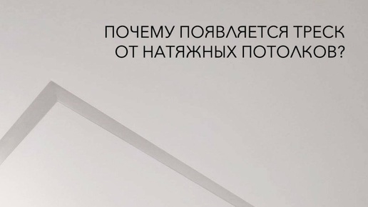 Почему появляется треск от натяжных потолков? Причин появления треска несколько. Сам по себе потолок трещать не должен. Вероятнее всего причина в запотолочном пространстве. 1. Некачественный монтаж профилей, большие расстояния между саморезами 2. Закладная под светильник 3. Неравномерное натяжение пленки 4. Перепады температуры 5...
