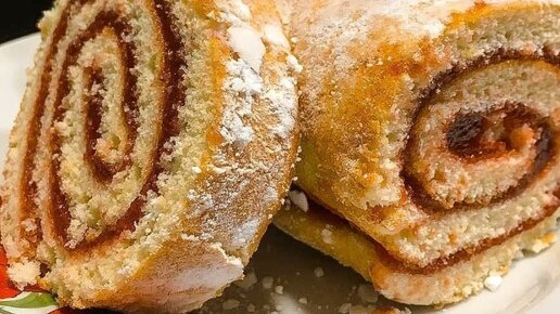 Удачный бисквитный рулет, бисквит легко сворачивается и не ломается!