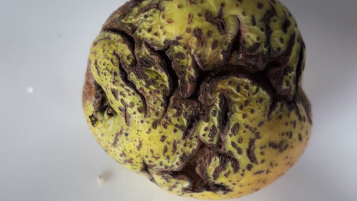 Затем в трещины на кожице яблок попал сажистый грибок, и трещины стали еще и чернеть.