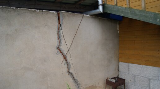 Говоря по честному, не ожидал, что по прошествии 3-х лет со времени постройки гаража, его стены дадут усадку и пойдут серьёзные трещины по всей высоте стен.