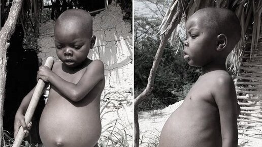 На многих фотографиях, где запечатлены жители бедных африканских деревень можно увидеть грязных полуголых детей в порванной одежде. Одной из отличительных особенностей этих малышей, которая сразу бросается в глаза, является раздутый живот. Многих это сбивает с толку, почему у плохо питающихся детей вырастают такие большие животы? Разве они не должны быть худыми от недоедания? На самом деле - нет, не обязательно. Когда у детей появляется такой тип раздутого живота, это называют «квашиоркор». Это форма недоедания, при которой имеет место быть серьезный дефицит белка...