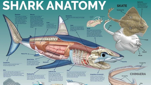 Вы когда-нибудь задумывались, из чего состоит тело акулы? Многие думают, что у неё есть кости, как у обычной рыбы. Но на самом деле у акул нет настоящих костей! Их скелет полностью состоит из хрящей — того же материала, из которого сделан ваш нос или уши. Давайте разберёмся, почему это так удивительно. Хрящи легче костей. Если бы скелет акулы был костяным, она просто утонула бы! Лёгкий хрящевой скелет делает акулу быстрой и манёвренной, что важно для охоты и выживания в океане. Кроме того, хрящи позволяют акуле быть гибкой...