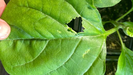 Сегодня расскажу о неприятности с рассадой🤷♀️. На днях обнаружила трипсов на листьях баклажан. Листики начали немного сворачиваться, кое-где появились дырочки, пожелтели края...