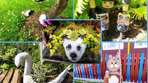 Уж простите, но снова про «помойный» стиль оформления участков. Про садовые фигуры, которые не все размещают уместно и органично на участке. Предоставлю Вам, уважаемый читатель (читательница) самому решить: «Это красиво?». Причем решить в каждом отдельном случае, потому что есть в моей подборке фотографий разные варианты. И некоторые мне нравятся, некоторые — откровенно ужасные. Есть и покупные фигуры из пластика. А также, так называемый «самодел» из разных бросовых (читайте «мусорных») материалов...