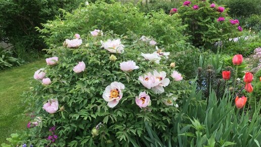 Приветствую, друзья! Одно время я уже хотела избавиться от травянистых пионов, потому что кусты вырастали огромные, но все цветы лежали на земле, в результате полюбоваться этим цветком не было возможности. И никакие подпорки не помогали. Наконец секрет пышного цветения пионов был разгадан - нужны несложные действия, чтобы цветов было много и они были крупными, но при этом стебли крепко держали бы их. Натолкнуло на продуктивную мысль уничтожение куста. Да, один куст я все-таки выкопала осенью. А он весной вылез опять...