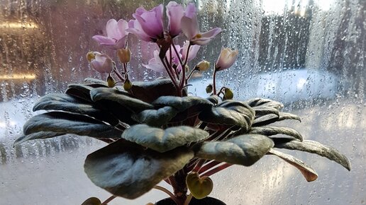 Бывают сорта, у которых стебель и должен расти. Это фиалочки трейлеры. Но наш разговор не о них. В моих условиях у деток это достаточно частое явление. Мне удобнее растить их в закрытых тепличках. Так они растут в идеальных условиях и потерь среди малышни нет. Но из-за тесноты они начинают тянуться. Бывает такое и не в тепличках. Если на полочке тесно, если мало света некоторые розетки тоже начинают изображать "пальму". А еще такой особенностью страдают некоторые сорта. К примеру, Optimara IsaBelle и Rhapsodie Clementine...