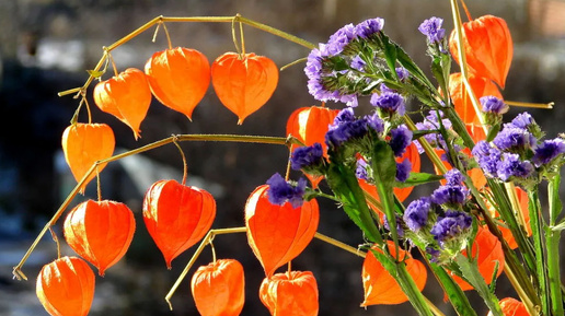 Физалис. Для меня это яркие фонарики осени, хотя загораются уже в июле. Потрясающе красивые сухоцветы, некоторые с десертной ягодой