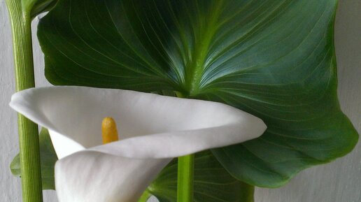 Каллу я приобрела летом 2021 года, еще совсем малышкой. Вот такая тоненькая, нежная и маленькая: Мы активно росли примерно полтора года. И с прошлого лета я могу похвастаться крупной каллой в виде раскидистых листьев размером с ладонь и на длинной ножке. Листья сменяются регулярно и калла имеет то три, то два листа. Но вот не цветет она у меня! А так хочется. Ведь когда я ее приобретала, я смотрела фото цветения и представляла, что у меня будет расти и цвести небывалой красоты растение, такое невозможно...
