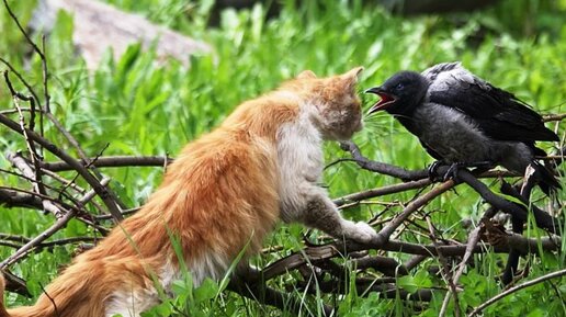 Птенец спорхнул с подоконника и подлетел к огромным страшным скорпионам. Не опускаясь на пол, воронёнок в пять ударов расправился с атакующим войском. После чего поскакал к своему кошачьему папочке и стал рассказывать ему в правое ухо, как он охотился. Кот наблюдал за голубями. Он был охотник и промышлял птицами. Разными. Дичь эта юркая, быстрая, и надо обладать терпением и уверенностью в себе, чтобы не остаться голодным. Ну, так вот он - умел. И приготовился уже к прыжку. Последнему. Он предвкушал вкус голубиного мяса, когда… Когда прямо ему на голову свалилось что-то...