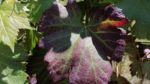 Покраснение листьев у винограда