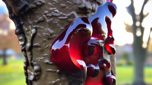 Вещество желтоватого цвета, клейкое и густое, могут выделять вишни и другие плодовые деревья: сливы, персики, черешни. Это тревожный признак, на который надо обратить внимание. Желтоватое густое вещество, выделяемое деревьями, это камедь. Она появляется на стволах при морозобоинах или грибковых инфекциях. В первом случае поступать надо таким образом. Срезать участок коры вместе с выделившимся веществом, захватывая 4-5 мм здоровой древесины. Появившуюся рану надо обработать медным купоросом, раствор 1%...