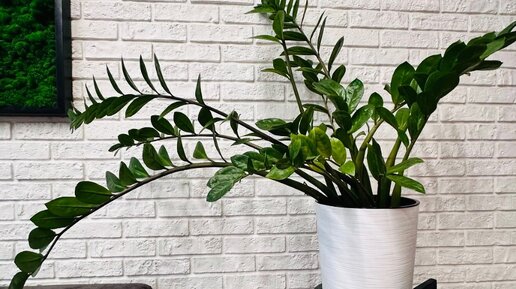 Один из самых распространенных и красивый растений-замиокулькас. Часто можно увидеть, что листья красавца распадаются в разные стороны и их пытаются закрепить различными подпорками. Попробуем понять почему это происходит и что делать? При недостатке освещения листья начинают сильно вытягиваться, междоузлия становятся всё длиннее, а сам стебель тоньше и тоньше. Естественно держаться вертикально становится проблематично и начинается завал набок. Значит вывод первый-обеспечить растению хорошее освещение...