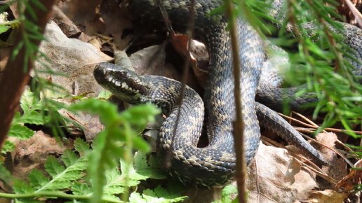 Вижу гадюк постоянно, начиная с весны и до самой осени. Как только начинает пригревать солнышко, пресмыкающиеся выползают на камешек или пень погреться. В наших краях на северо-западе чаще встречается обыкновенная гадюка. Её обычная длина не превышает 60 см, но бывают особи и крупнее. Раскраска от серой до коричневой с рисунком на спине. Распространена очень широко от Европы до Сахалина и даже за полярным кругом. В более южных широтах обитает черная гадюка Никольского. Она крупнее обыкновенной. Легко вырастает до одного метра...