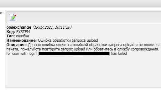Описание: Данная ошибка является ошибкой обработки запроса upload и не является ошибкой обработки бизнес-пакета, пожалуйста повторите запрос upload или обратитесь в службу сопровождения. Текст ошибки: Password check for user with login [******************] has failed Данная ошибка говорит, что проверка пароля для логина **************...