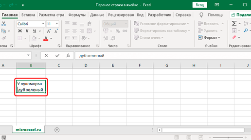 Как в экселе перенести текст на другую строку в одной ячейке