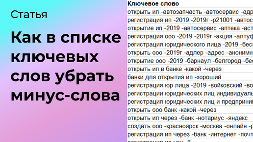 В статье поделюсь полезной формулой в Excel для быстрого удаления лишнего. Можно использовать как удаление лишнего в ячейке до определённого символа. Более 10 лет я работаю маркетологом и мне регулярно приходится работать со списками ключевых слов. Зачастую эти списки содержат как ключевые слова, так и “минус-слова”, то есть слова, которые я не буду использовать для показа рекламных объявлений. Например, в списке ключевых слов могут быть и “купить телевизор”, и “бесплатно телевизор”. Когда мне нужно...