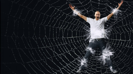 Паучок выстреливает паутину. Видно невооружённым глазом. А какие длинные у него передние ноги! Это точно ноги?