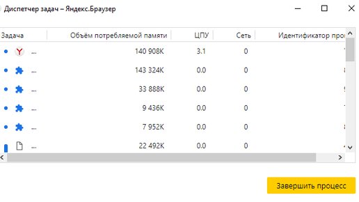 К сожалению, даже достаточно мощный ПК и, казалось бы, идеальный во всех отношениях браузер бывают нередко подвержены зависаниям и багам (например, браузер перестает реагировать на действия пользователя, т.е. зависает, или же вкладка отказывается закрываться). Именно для такого случая разработчиками был добавлен диспетчер задач в Яндекс.Браузер. Что... Что же представляет собой диспетчер задач?.. Диспетчер задач является специальной утилитой, расположенной внутри программы, позволяющей управлять процессами браузера...