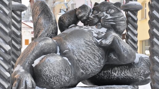 Путешествие в Казань. Один из символов города- Кот Казанский, металлическая скульптурно-архитектурная композиция..