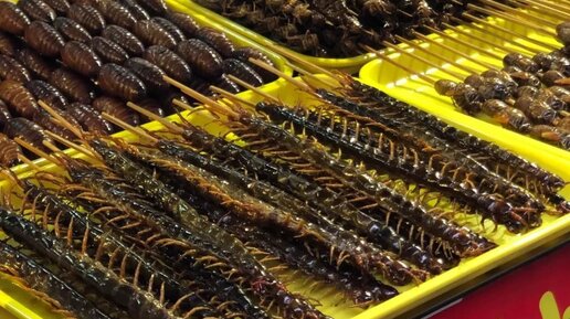 Есть распространённое мнение, что в Китае едят всё подряд. Это представление поддерживается и туристами, которые видят в Китае на улочках с разной снедью экзотические блюда из личинок, скорпионов на вертеле, саранчи и прочей экзотики. На самом деле это все продаётся в основном для туристов, главным образом, иностранных. Специально для поражающего эффекта. Нормальные китайцы обычно это не едят. Разве что в особых случаях, в лечебных или же развлекательных целях. Есть поговорка, что в Китае едят всё что летает, кроме самолёта, всё, что плавает кроме лодки, и всё, что двигается кроме машины...