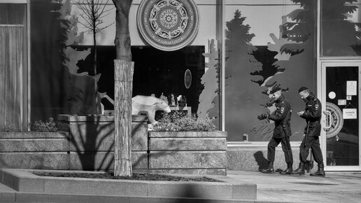 Совершенно случайно перебирая фотографии, обратил внимание на сотрудников полиции, на их внешний вид. Сфотографировал в самом центре Москвы на улице Тверской рядом со зданием Госдумы Российской Федерации, рядом с Кремлём - представителей власти. Ничего, что в телефоне они зависают и не смотрят по сторонам, не следят за обстановкой в городе, но ведь они ещё и... Без масок. Без защитных перчаток. А как же коронавирус и средства защиты от заражения, и все эти призывы носить маски и пользоваться...