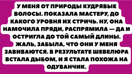 Каждый человек хотя бы раз в жизни оказывается в парикмахерской. Кто-то мечтает о совершенно новом образе, другие хотят просто освежить прическу. Но порой полученный результат несколько отличается от ожиданий. И подобные походы остаются в памяти на долгое время. Рекомендуем также заглянуть сюда 👇👇👇 Подружка открыла салон и жаловалась, что клиентов у нее — кот наплакал. Решила я ей помочь. Договорились добавить коричневых «перьев» в мою черную шевелюру. Красит она меня и все болтает о своем муже...
