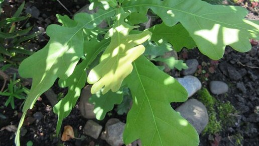 А молоденький дубочек очень хорош! Если сразу прижился, то потом он чувствует себя довольно уверенно и быстро растёт. Его листочки весной могут быть чувствительными к заморозкам. Приходилось видеть обваренные морозом только проклюнувшиеся листочки небольшого дуба, чёрные и обвисшие...