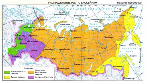 Реки России относятся к бассейнам океанов: Северного Ледовитого, Тихого, Атлантического и к бассейну внутреннего стока (бассейн – территория, с которой река и ее притоки собирают воду). Питание и режим рек связаны с климатом.