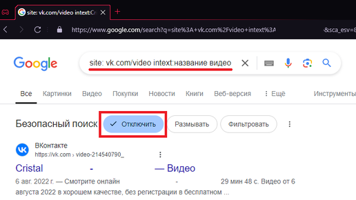 Т.е использовать внешние поисковые системы, для поиска по сайту "ВК ВИДЕО".