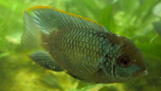 Самая частая жалоба на воду в аквариуме, которую я слышу: "Вот у вас вода прозрачная, а у меня мутная! Что делать?" При этом "что делать" никак нельзя выяснить, если не знать цвет помутнения воды. Вообще цвет мути имеет значение. Первая причина: "зазеленело": зацвел аквариум или зацвела вода (цветение воды убрать сложнее). Вот в этом аквариуме зелено, но с водой тут в принципе все не так категорично. Стенки позеленели. Свет преломляется и дает зеленцу. По количеству улиток мы сразу видим, что здесь есть перекорм...