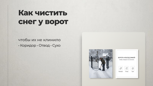 Зимой ворота и въезд (дорожное покрытие) «ломаются» не от снега как такового, а от «стратегии» уборки. Почистили «в куда‑то» — и через день получаете два сюжета сразу: створки зажало, а перед въездом вырос ледяной вал (и колея). Ниже — практичный план: в какой последовательности чистить снег, куда его скидывать и как не сотворить «плотину» у ворот, а еще — что сделать, чтобы ночью не схватилось льдом. Отметьте, что у вас сейчас (можно выбрать сразу несколько пунктов): — ворота цепляют снег/наледь...