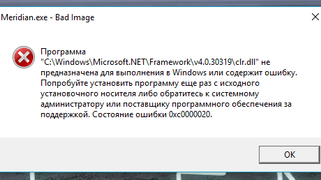 Ошибка на Windows10 framework\v4.030319\clr.dll не предназначена для выполнения в Windows