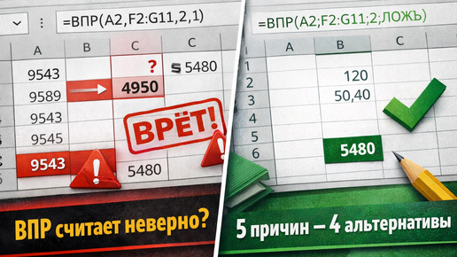 Теперь сложнее. Формула работает. Ошибки нет. Но возвращает не то значение. Это опаснее. Потому что вы верите результату. Сегодня — полный разбор ВПР и всех реальных причин “тихих” ошибок...