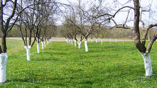 Как правило, садоводы белят стволы деревьев два раза в год — весной и осенью, перед заморозками.