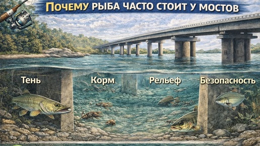 Если вы хоть раз ловили рыбу или просто гуляли вдоль реки, то наверняка замечали странную закономерность: у мостовых опор вода буквально кипит от плавников. Там всегда кто-то стоит. Лещ, судак, окунь, плотва, а иногда и солидный сом выглядывает из-под бетонной сваи, как хозяин подземного гаража...