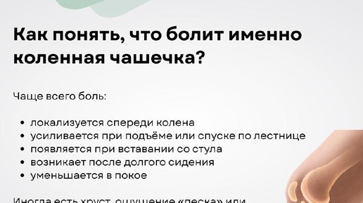 ? Боль в области коленной чашечки — одна из самых частых причин, с которой люди приходят к врачу после 40–50 лет. Важно понимать: чаще всего это не «износ всего колена», а проблема в том, как работает надколенник и какие мышцы его удерживают. Если не разобраться, боль может тянуться месяцами и постепенно ограничивать движение...
