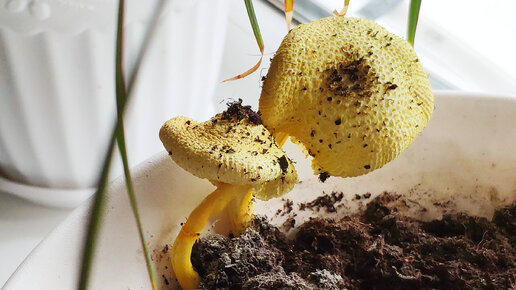 Сюрприз. Выросли в горшочке желтые грибочки. Что делать?