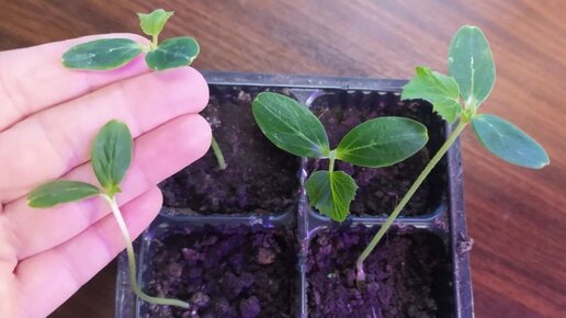 Что делать, если рассада огурцов вытянулась. Показываю, как спасти растения