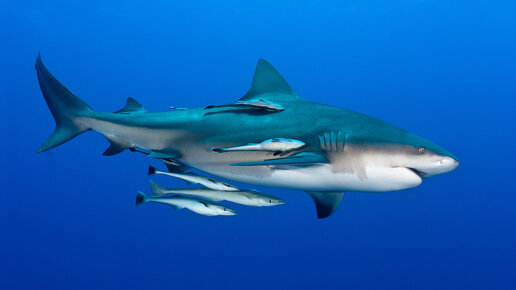 Что за рыбки плавают с акулой, и почему она их не трогает?