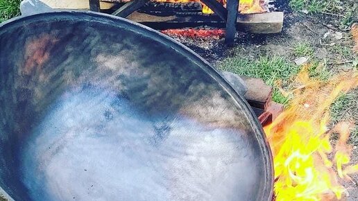 Обжиг узбекского чугунного казана
