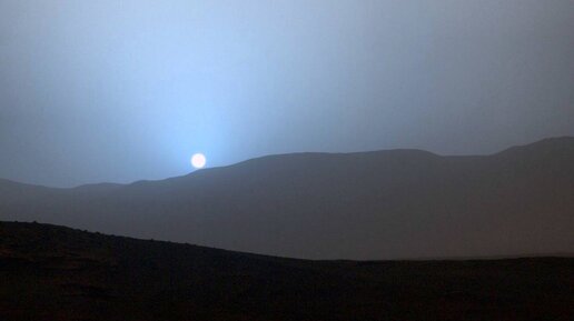 Любой человек хоть раз в жизни видел закат на Земле. Красно-оранжевое небо, плавно меняющее свои оттенки... красота. Но мало кто знает, что закаты на Марсе выглядят синими. Почему? Всё из-за атмосферы красной планеты. Дело в том, что её почти нет. Она составляет около 1% плотности атмосферы Земли. Во время захода лучи Солнца рассеиваются и остаются только синие оттенки...