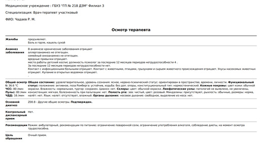 Всех приветствую. Пост без рейтинга. Расскажу вам на собственном примере, как на самом деле работает бесплатная медицина в столице нашей Родины. Моя супруга работает в детском хосписе. Работает с детьми с паллиативным статусом, многие из них находятся на аппаратах ИВЛ. В субботу она почувствовала себя плохо, поднялась температура, появилась головная боль, кашель. В общем - заболела. 10 августа она обратилась по месту жительства (г. Москва) в поликлинику 218 филиал 3 (ГБУЗ “ГП №218 ДЗМ” филиал №3) к дежурному терапевту Чадаеву Рустаму Магамедовичу...