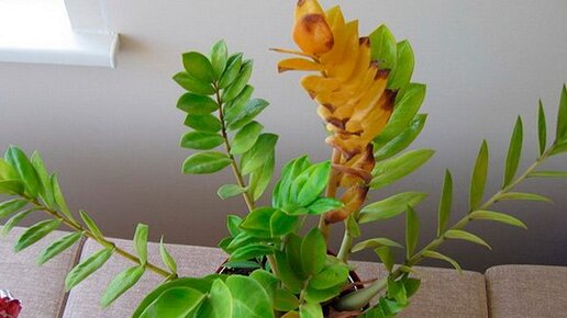 Почему у замиокулькаса листья становятся жёлтыми и сухими: что с этим делать?