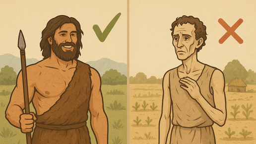 Когда мы говорим о развитии человечества, переход к земледелию обычно воспринимается как огромный шаг вперёд. Люди перестали кочевать, построили поселения, научились хранить урожай и обеспечивать себя едой. Но есть одна деталь, которую редко обсуждают: здоровье первых земледельцев оказалось хуже, чем здоровье охотников-собирателей, которые жили до них. Для антропологов это давно не загадка. Скелеты людей, живших 10–12 тысяч лет назад, рассказывают историю, которая сильно отличается от школьного представления о «прогрессе»...