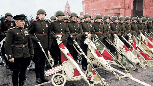 Всем нам памятны эпичные кадры кинохроники знаменитого первого парада Победы - в Москве июня 1945-го... Красная площадь... Советские воины бросают трофейные знамена поверженной Германии к Мавзолею Ленина. Более двух сотен штук, включая личный штандарт самого Гитлера! При этом на руки воинов-победителей, несущих вражеские флаги, надеты особые перчатки из кожи. Но зачем же и как советские солдаты надели тогда перчатки? Считается, что таковое желание выразили сами участники парада. Мол, когда узнали,...