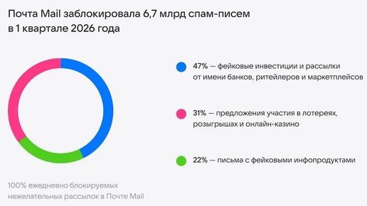 Почта Mail заблокировала 6,7 млрд фишинговых писем в I квартале 2026 года: как мошенники обходят защиту и какие схемы атаки стали популярнее