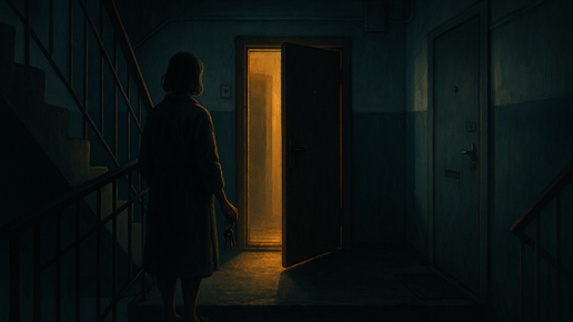 За той самой стеной, за которой уже десять лет подряд должна быть тишина: там «пустая» квартира на пятом этаже. Она несколько секунд лежала, прислушиваясь. Чёткий стук каблуков по паркету, короткая пауза, скрип… как будто кто-то осторожно отодвигает стул. Потом — глухой звук, похожий на щелчок выключателя, и короткое жужжание, как будто включился старый телевизор. Марина взглянула на часы — без десяти три. Дом спал...